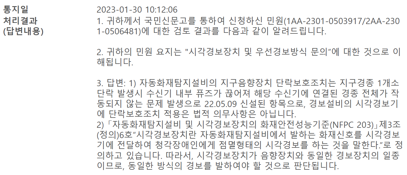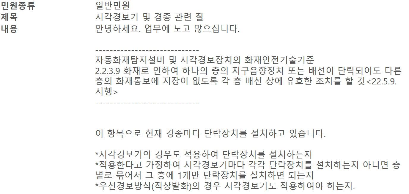 시각경보기 우선경보방식(직상발화) 및 단락장치 적용 여부 질의회신