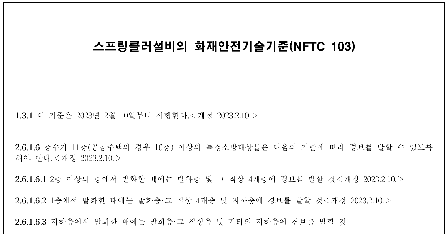 | 특정소방대상물의 관계인이 특정소방대상물에 설치ㆍ관리해야 하는 소방시설의 종류(표)-시행일 별 정리 (2) | 2023.02.28 |