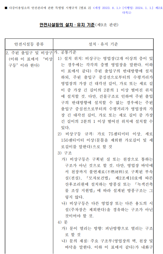 다중이용업소의 안전관리에 관한 특별법 시행규칙 [별표 2]