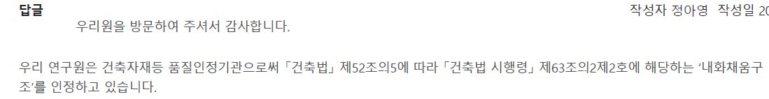 Q)내화충전재, 내화충진재, 내화실란트, 방화실란트 성적서 유효기간이