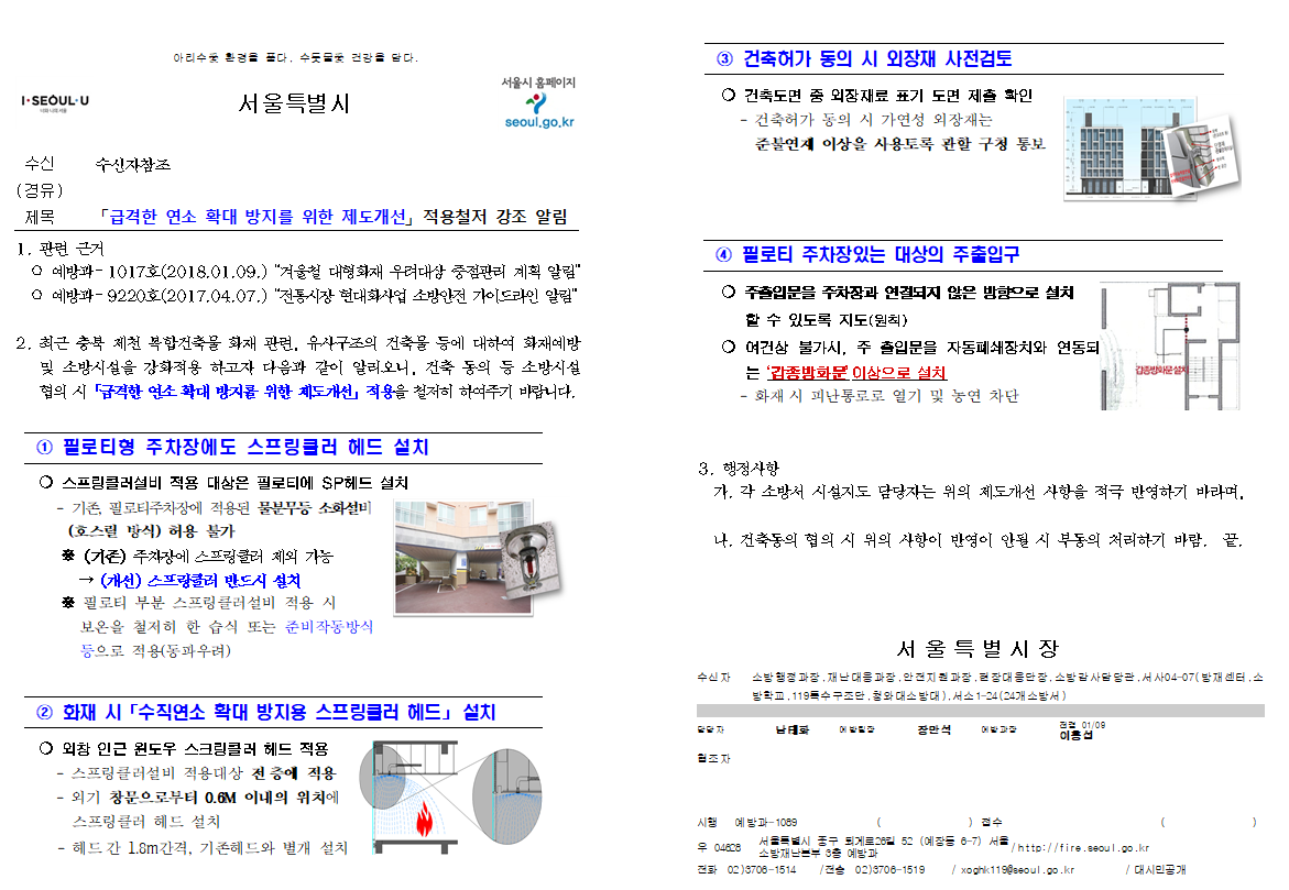 「급격한 연소 확대 방지를 위한 제도개선」 적용철저 강조 알림 2018.01.09.(서울)