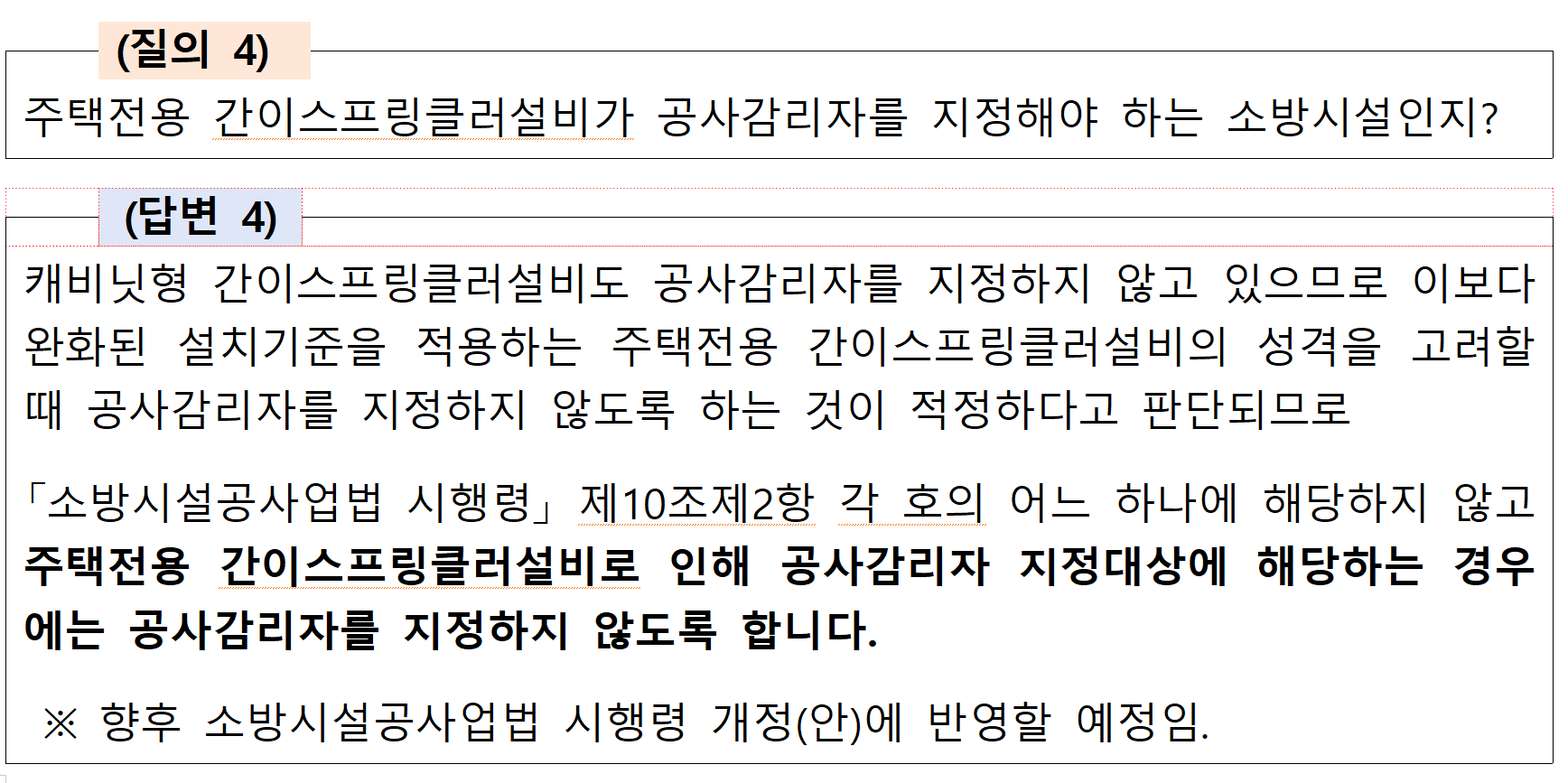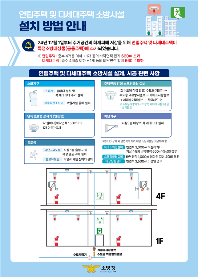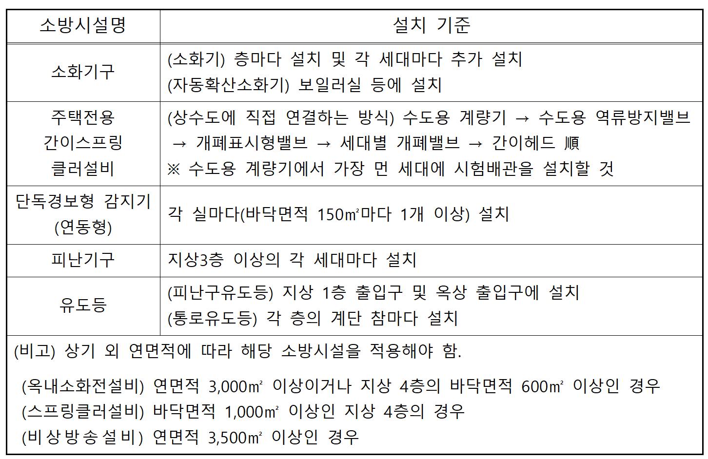 연립주택 및 다세대주택 소방시설 설치 방법 안내+주택전용 간이스프링클러 감리자 지정여부+관련 질의회신 포함 (소방청 자료)