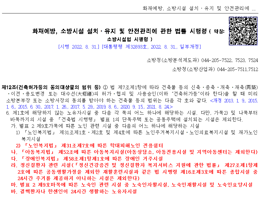 노유자생활시설의 범위 및 설치해야하는 소방시설
