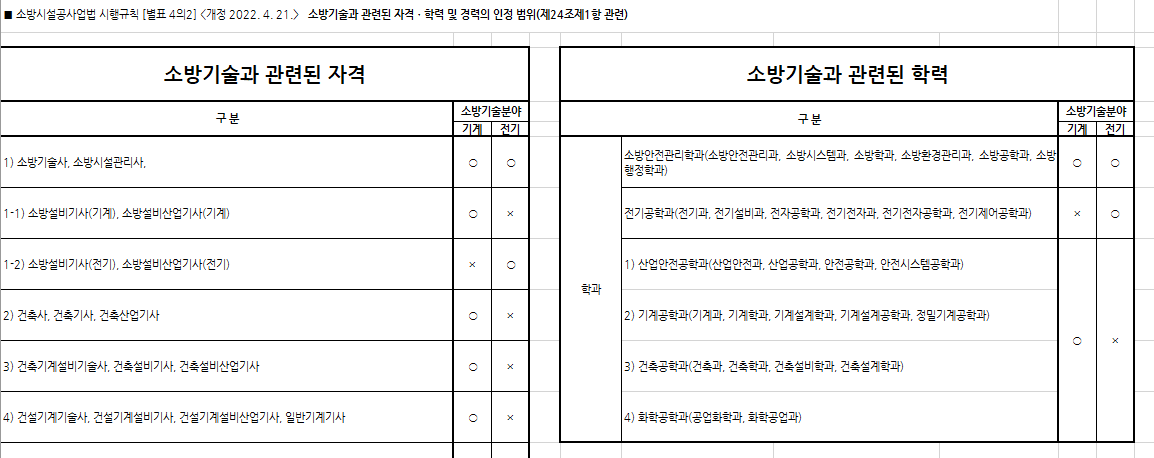[별표 4의2] 소방기술과 관련된 자격ㆍ학력 및 경력의 인정 범위(제24조제1항 관련)(소방시설공사업법 시행규칙) (4).hwp
