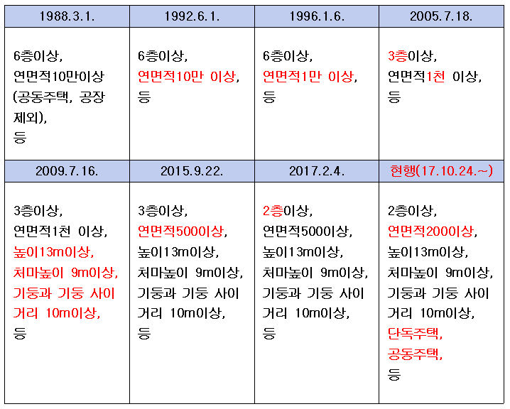 (건축)내진설계 대상 건축물(현행+연혁/변천사 정리 (표))