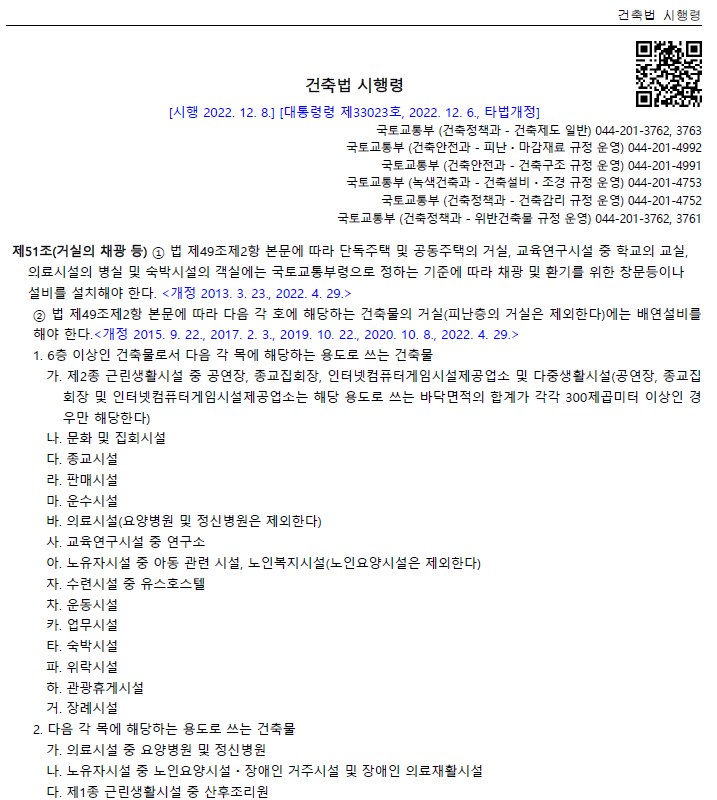 | 방화구획 설치 기준, 설치 대상, 완화대상 (1) | 2023.01.06 |