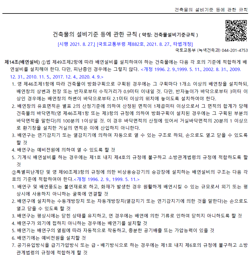 -건축물의 설비기준 등에 관한 규칙 제14조(배연설비)