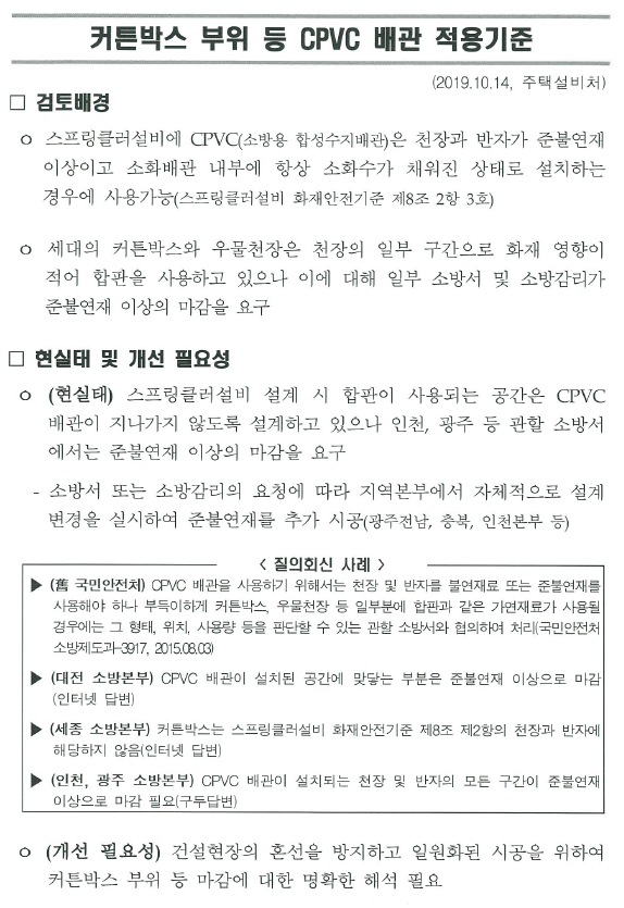 세대 내 커튼박스, 우물천장(합판 등 가연재료) CPVC 시공 가능 여부